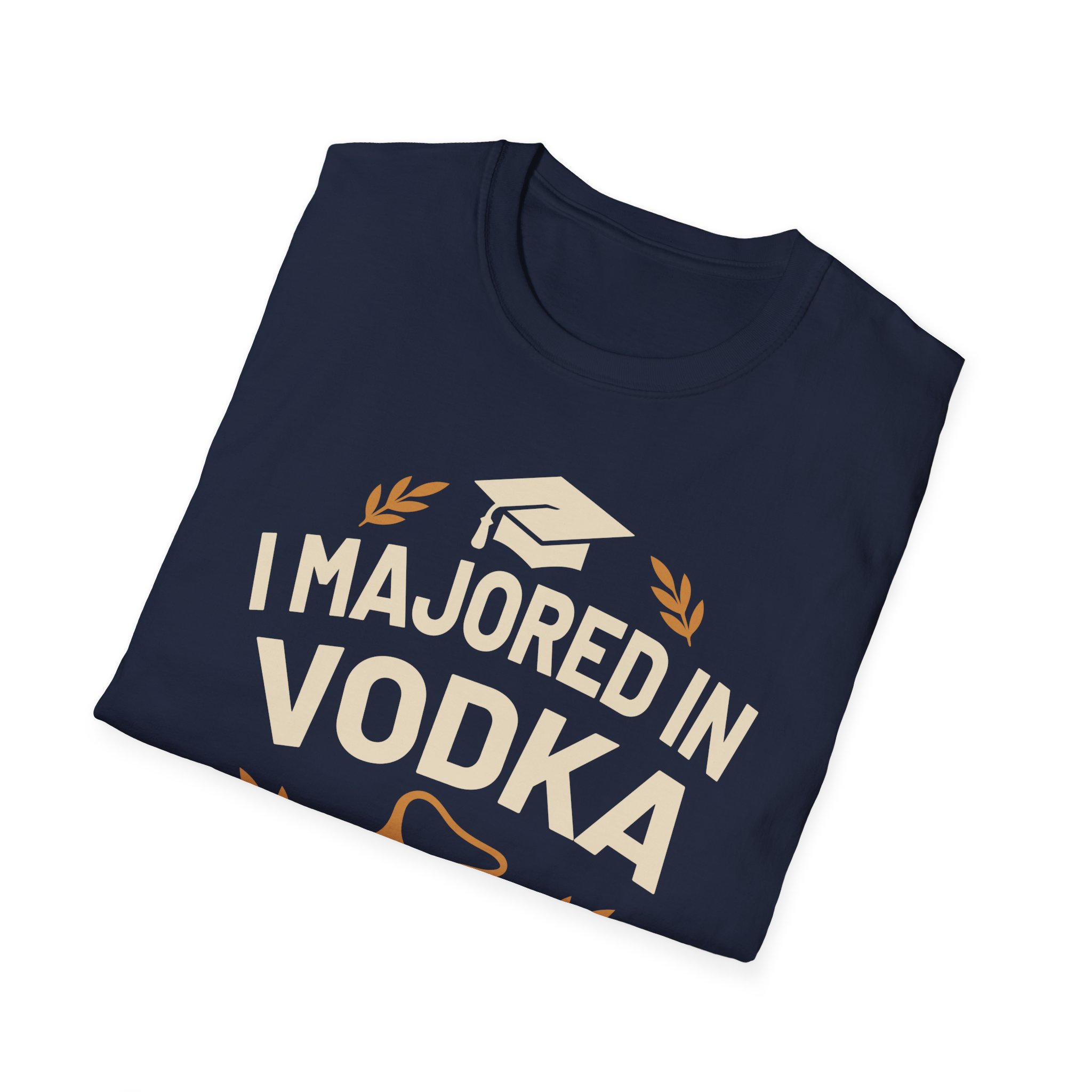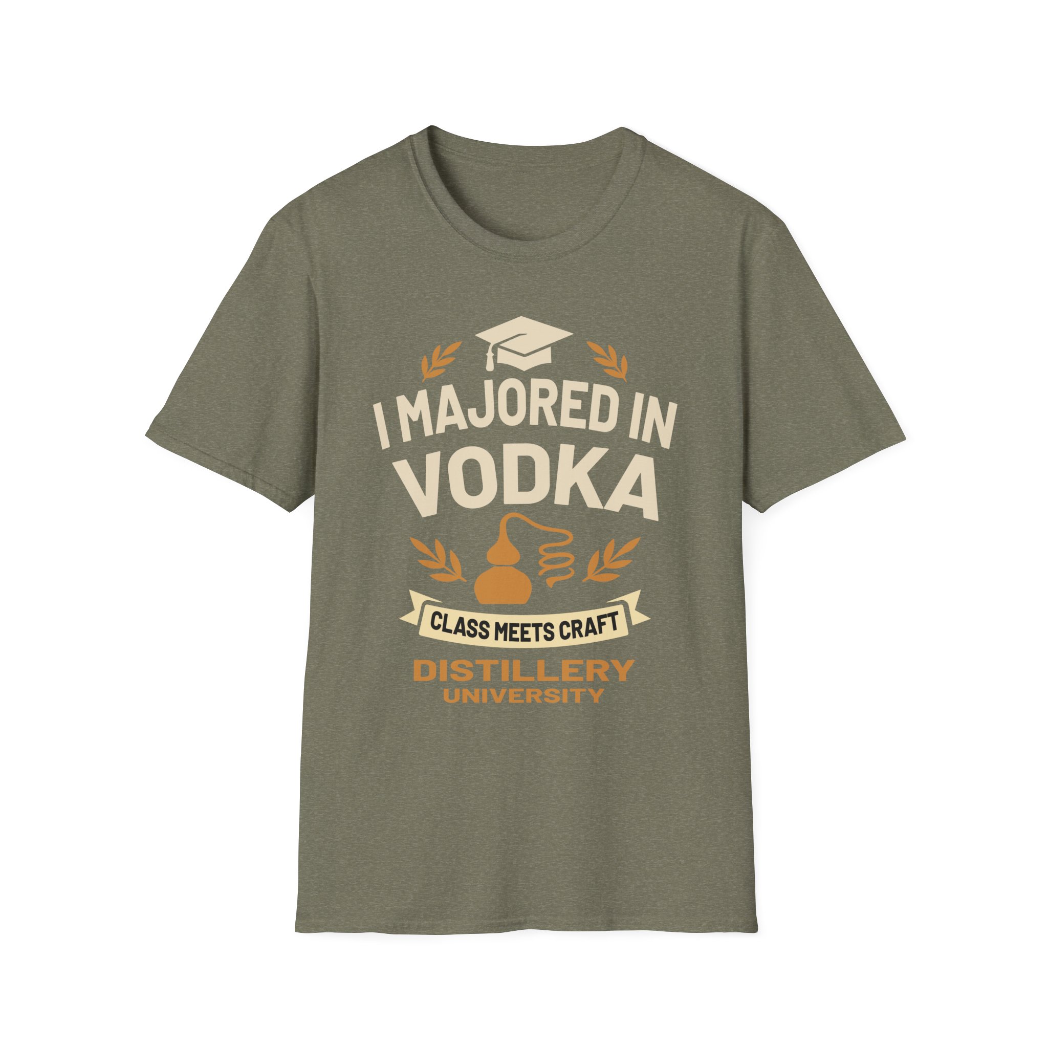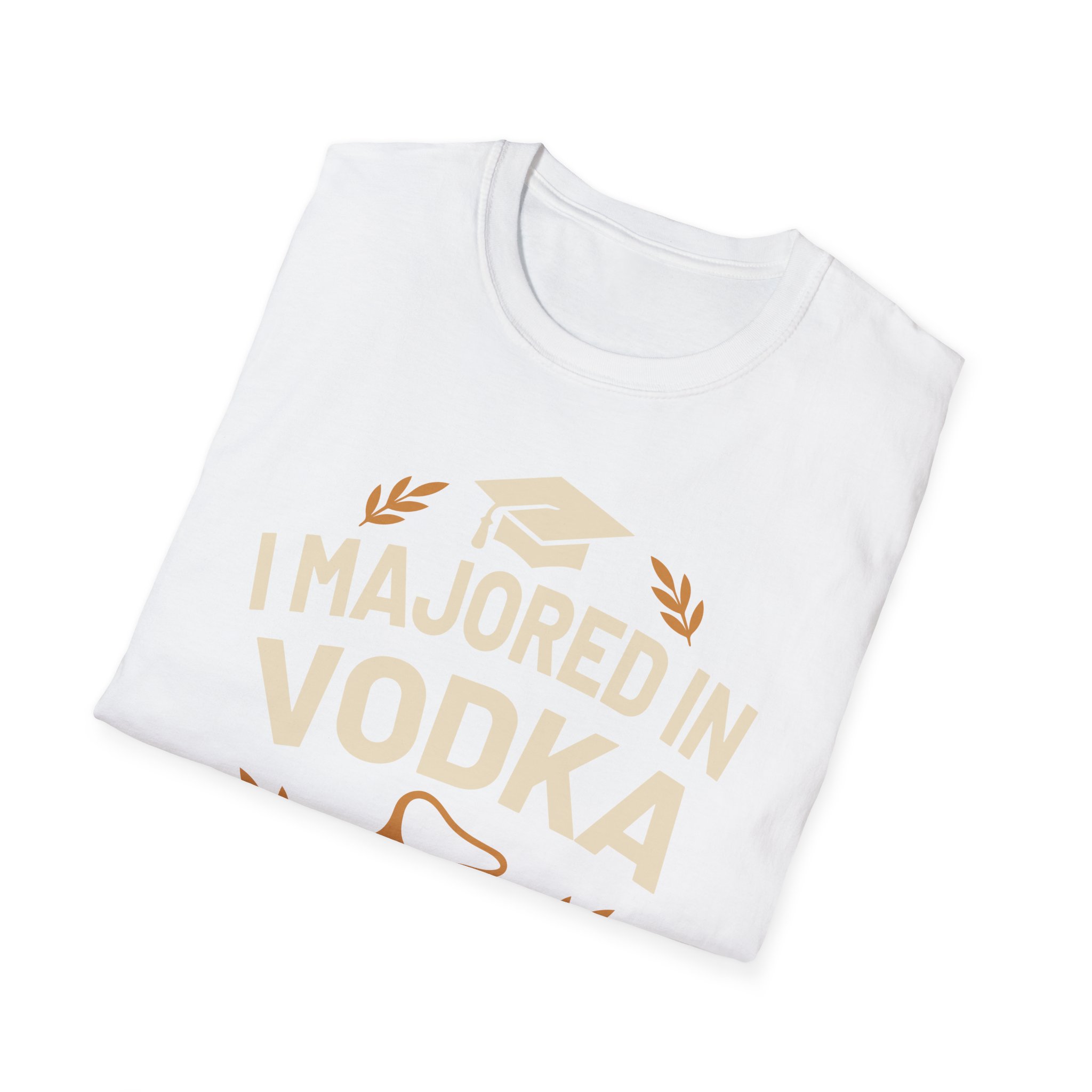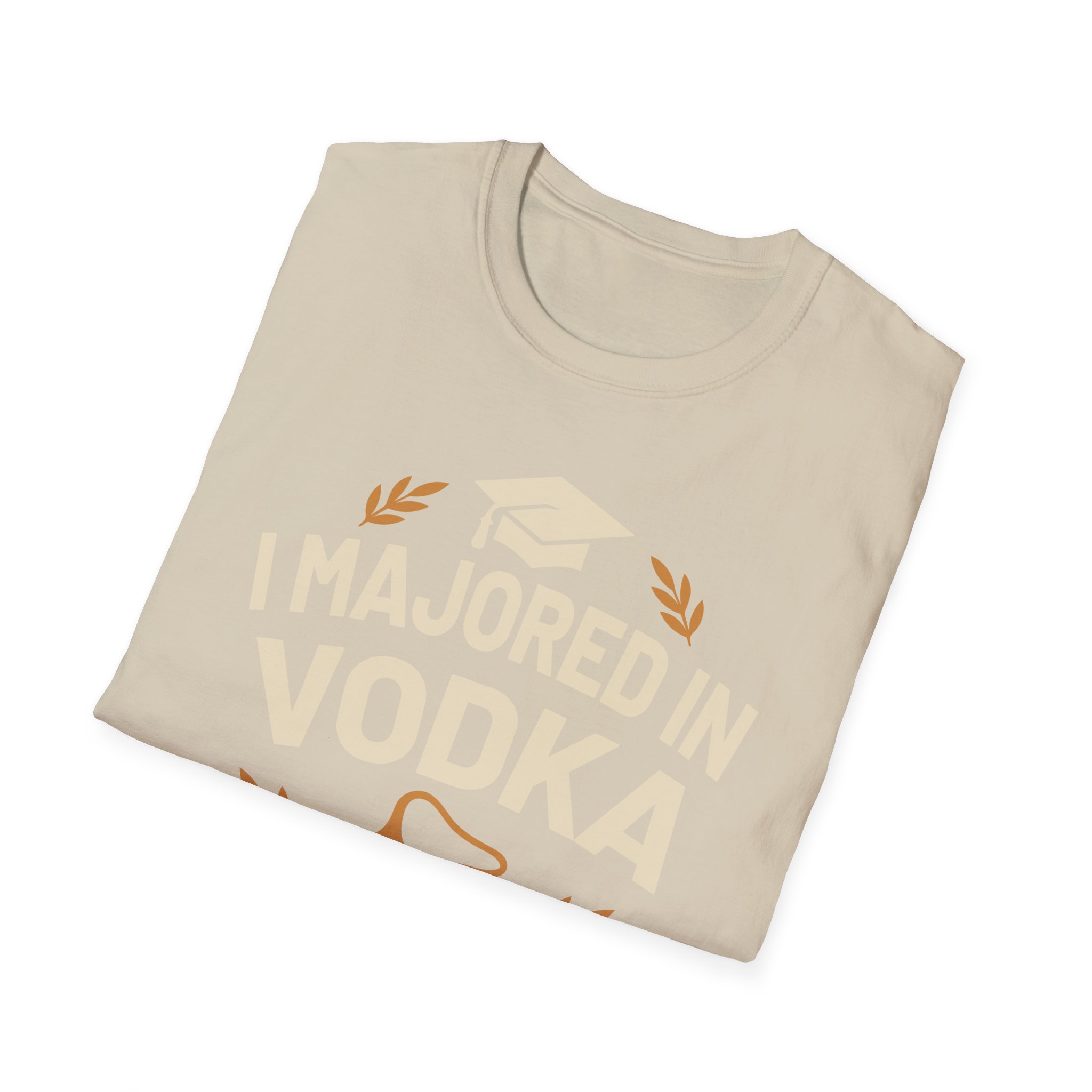Simple doesn’t mean easy. The “I Majored in Vodka” unisex softstyle t-shirt is for those who understand that making something truly clean, smooth, and precise takes serious skill. It’s a subtle nod to the distillers and spirit lovers who know that vodka leaves no room for mistakes—and that mastery shows in the details.