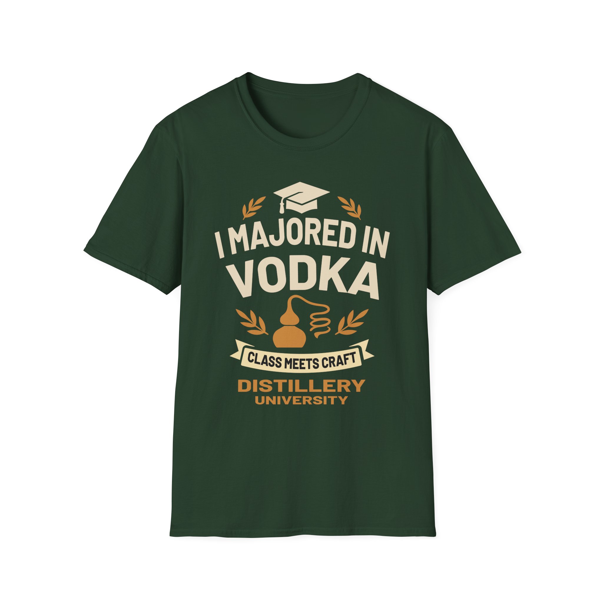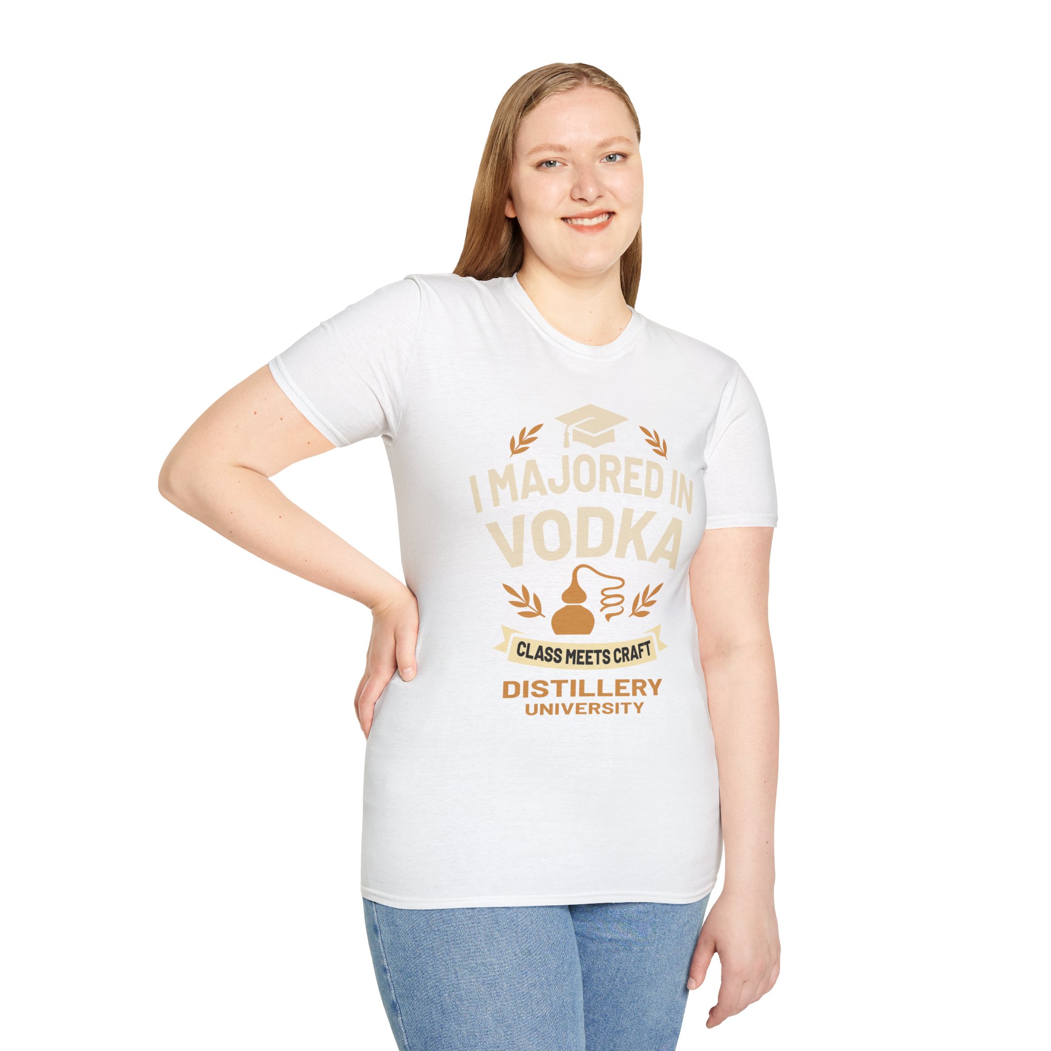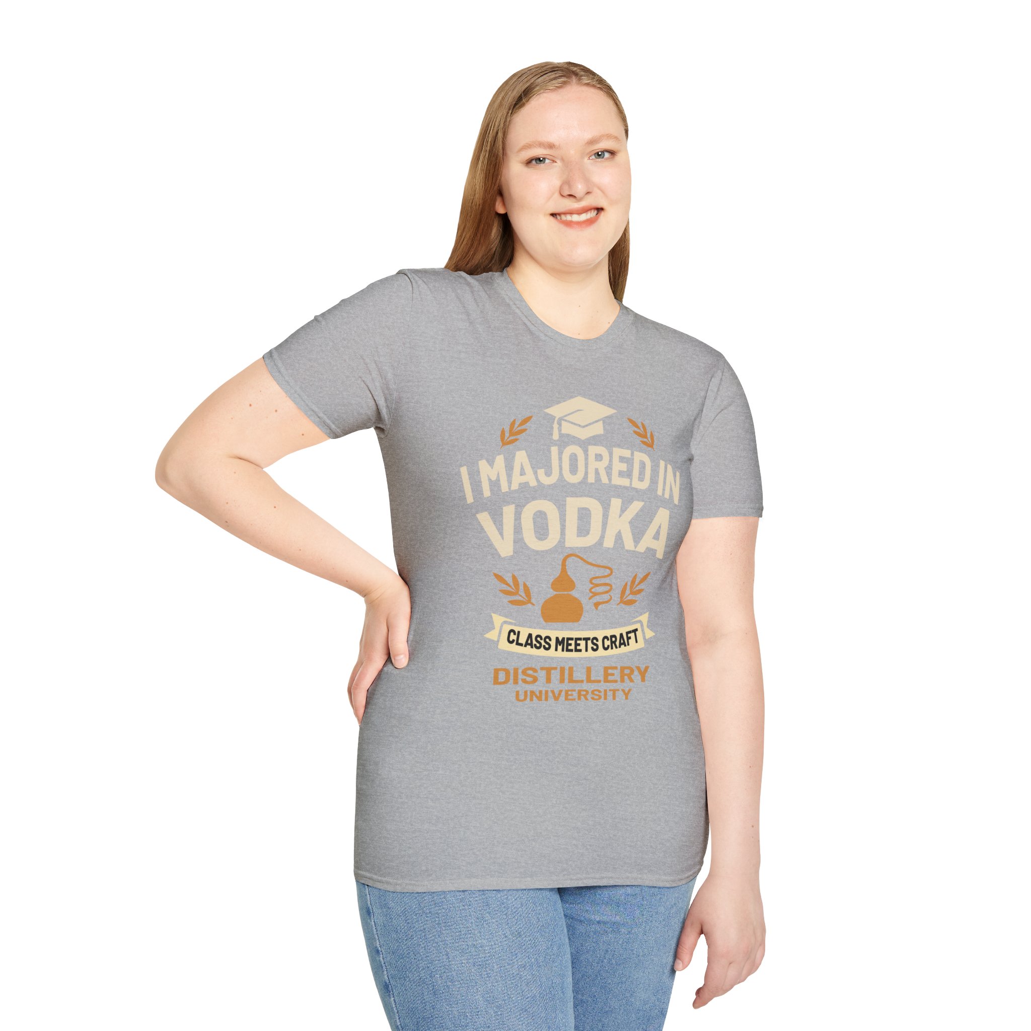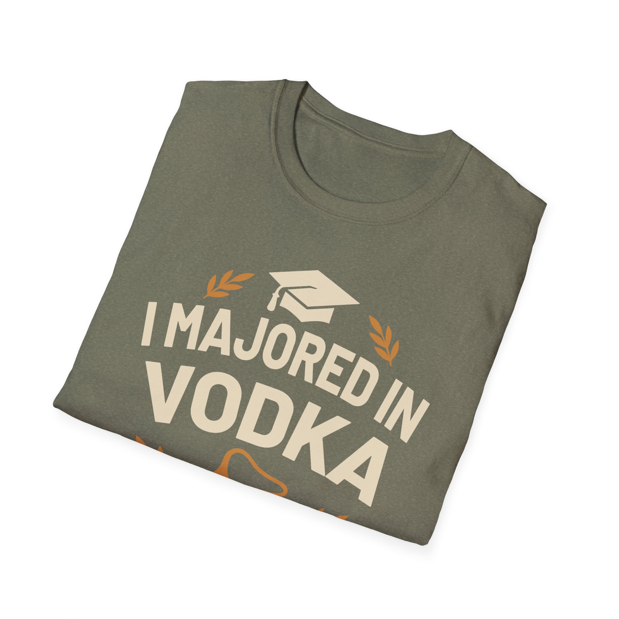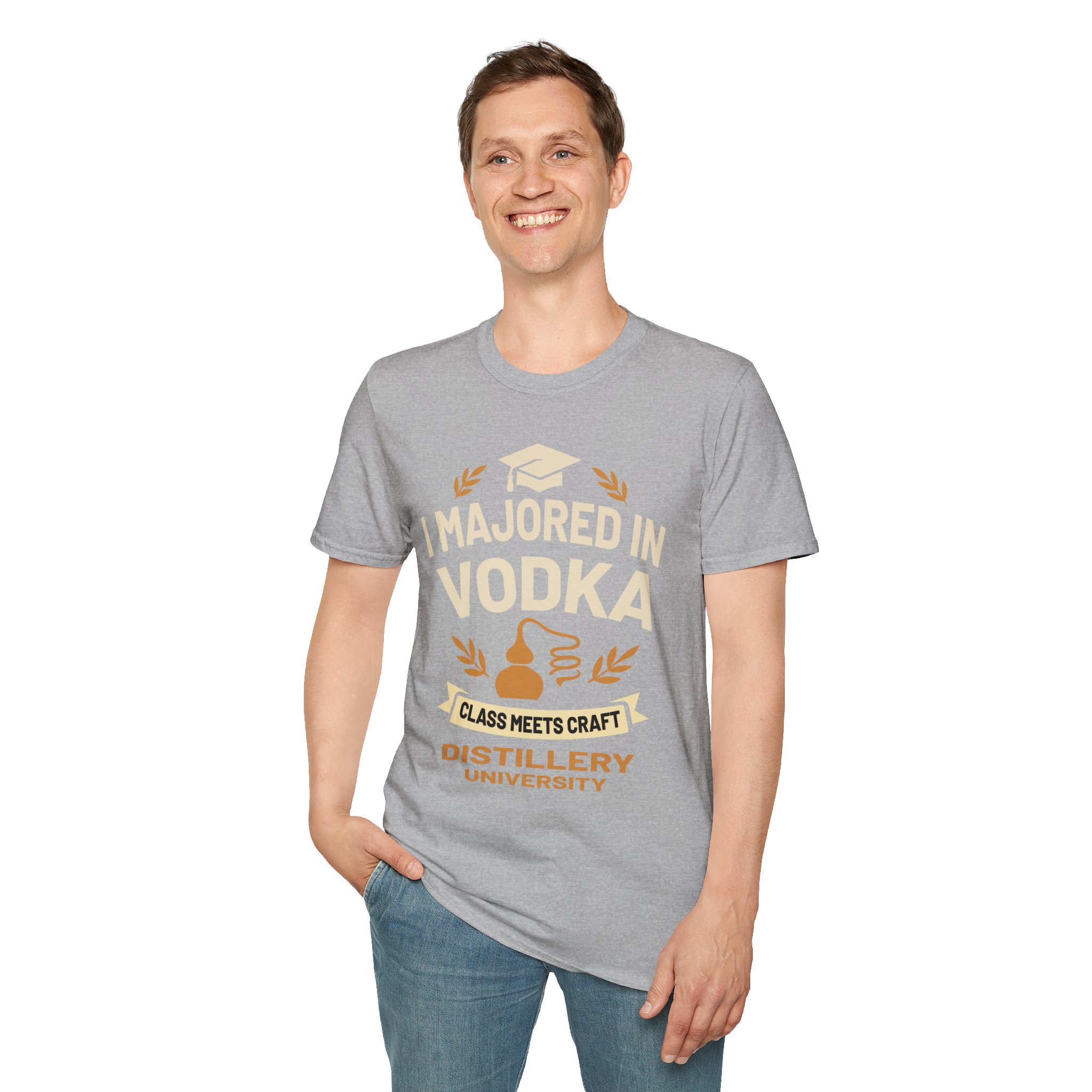 Simple doesn’t mean easy. The “I Majored in Vodka” unisex softstyle t-shirt is for those who understand that making something truly clean, smooth, and precise takes serious skill. It’s a subtle nod to the distillers and spirit lovers who know that vodka leaves no room for mistakes—and that mastery shows in the details.