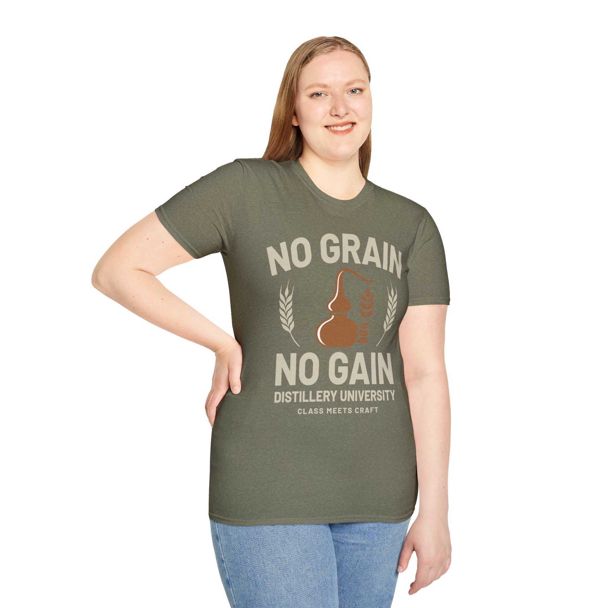 Great spirits don’t happen by accident—they start with grain. The “No Grain No Gain” unisex softstyle t-shirt is a smart, no-nonsense nod to the foundation of distilling and the work it takes to get it right. With a playful twist on a classic phrase, this tee speaks to distillers, whiskey lovers, and makers who understand that effort and ingredients matter.